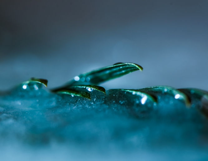 The process of creating a Submerged in Ice photograph brought me peace. Putting an object or a plant in ice was a long process, but it was satisfying when I placed the ice block down and watched the plants and objects emerge from the melting ice. Watching the objects or plants interact with the ice was a remarkable sight, as it created air bubbles stuck in that state until the block melted. I would spend hours photographing different angles of the ice block, looking for the extraordinary.
